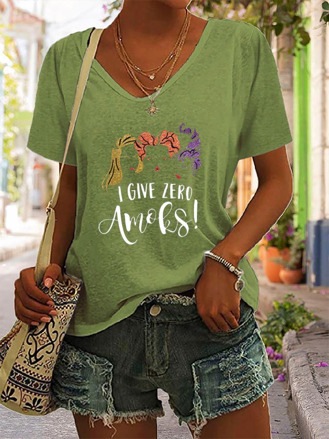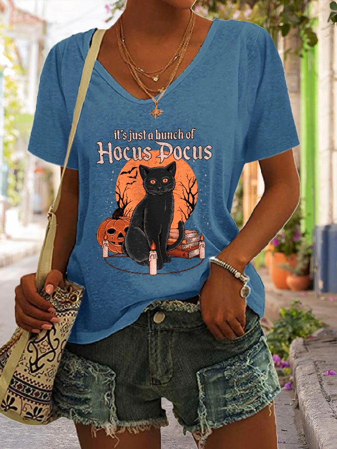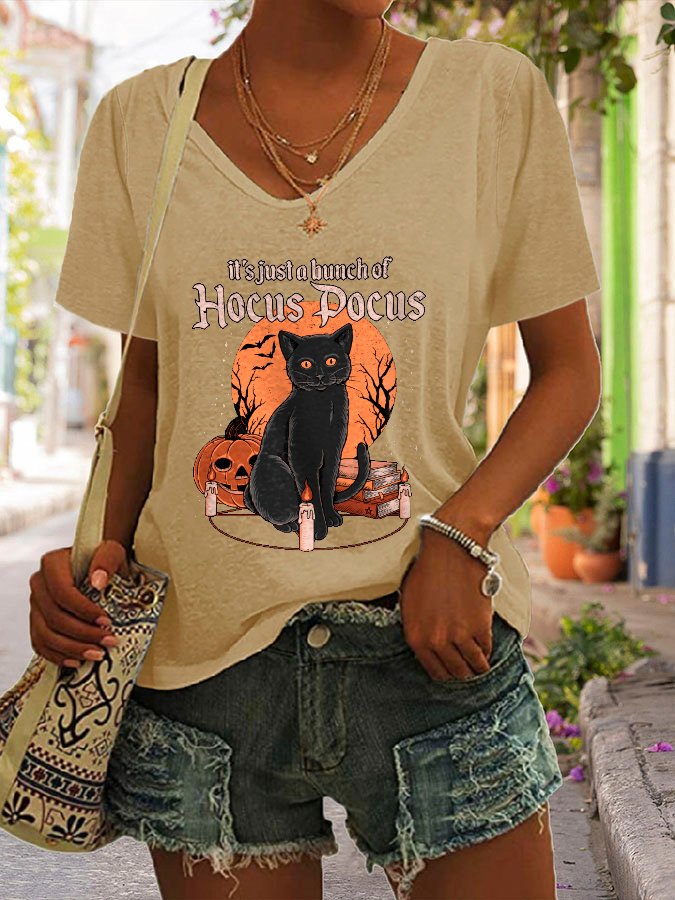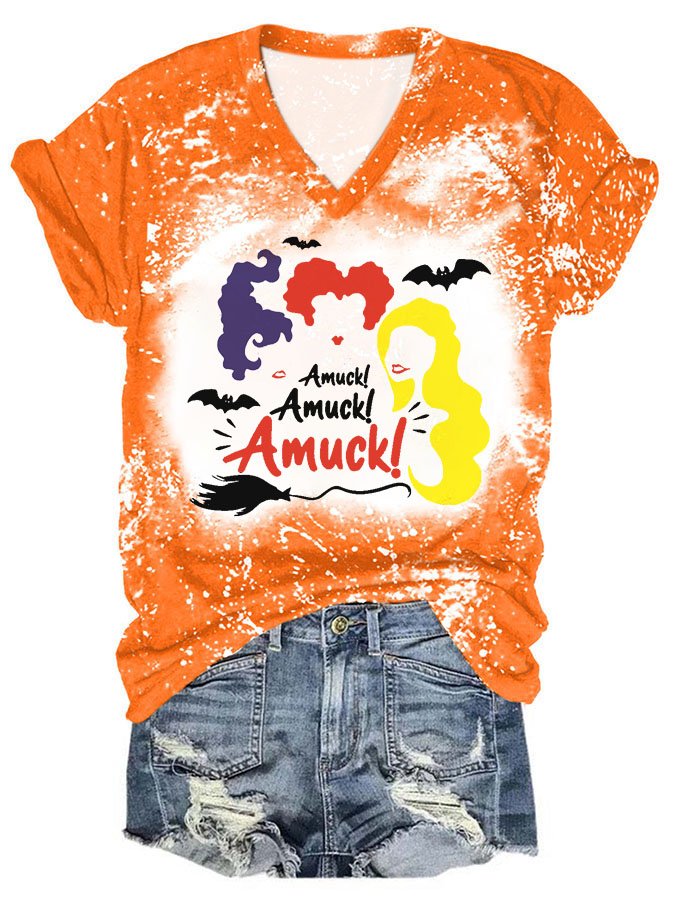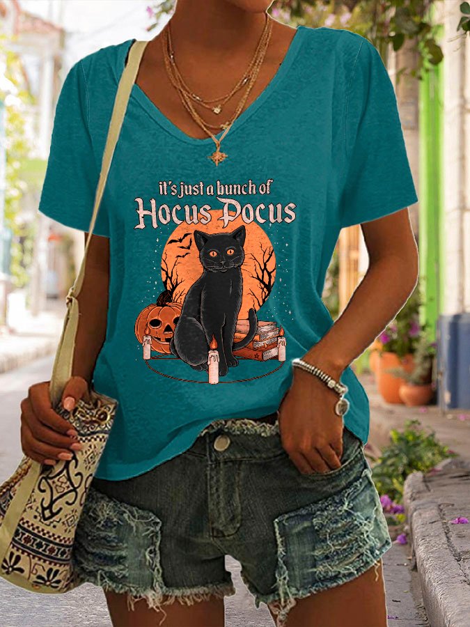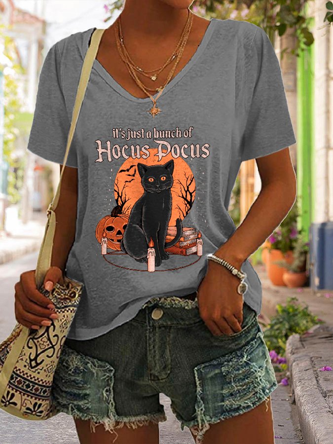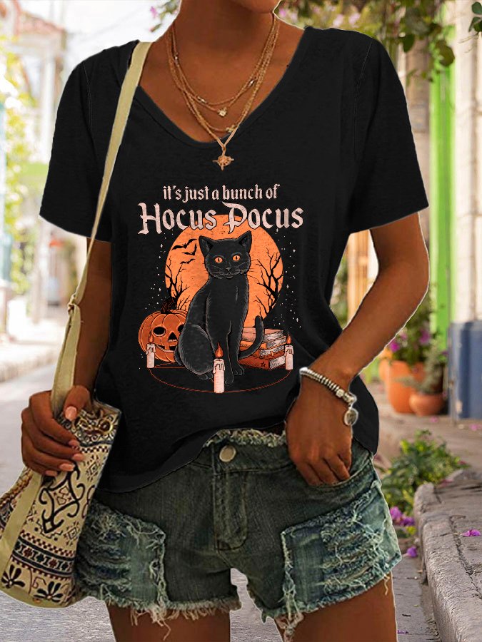 Halloween Print V-Neck Short Sleeve T-Shirt