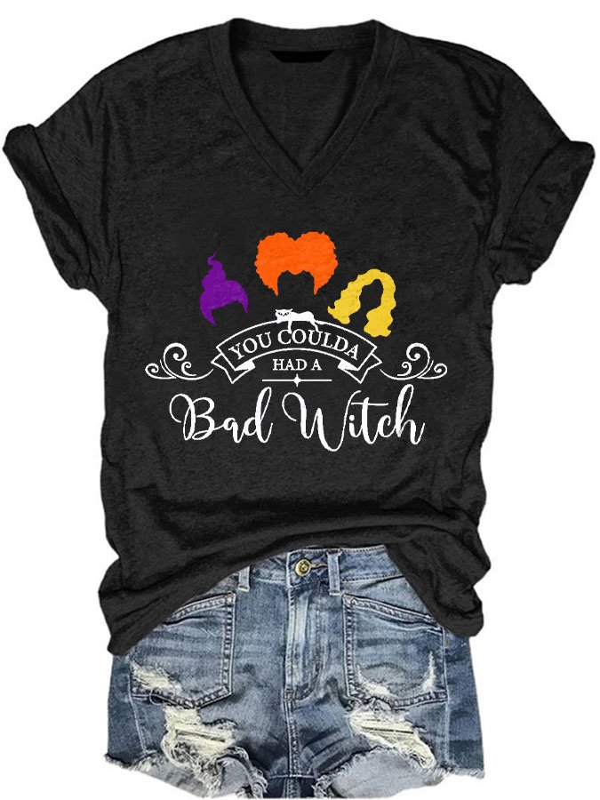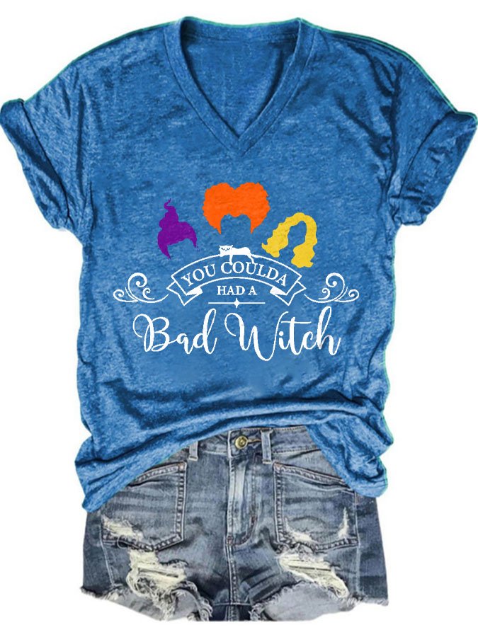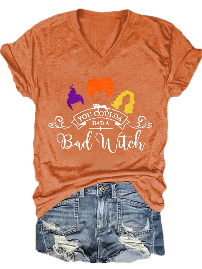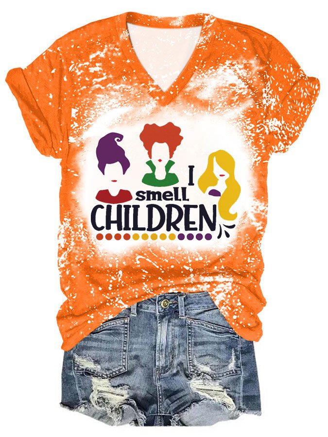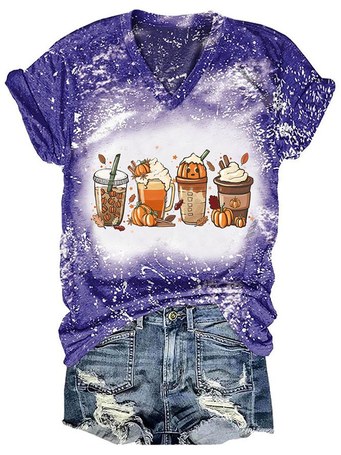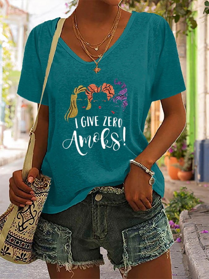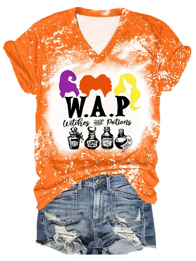 Halloween Print V-Neck Short Sleeve T-Shirt