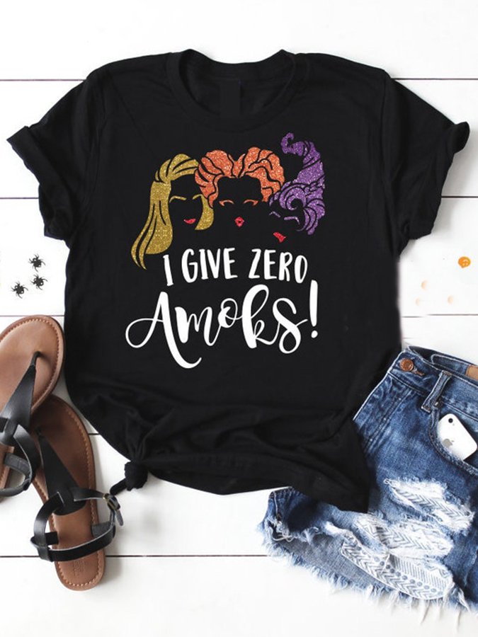 Halloween Letters Print Short Sleeve Casual T-Shirt