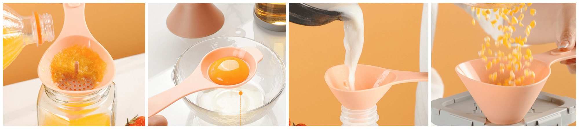 This 6-in-1 funnel set will meet your daily needs for straining food scraps, separating egg whites, filling liquids, powders, granules and much more.